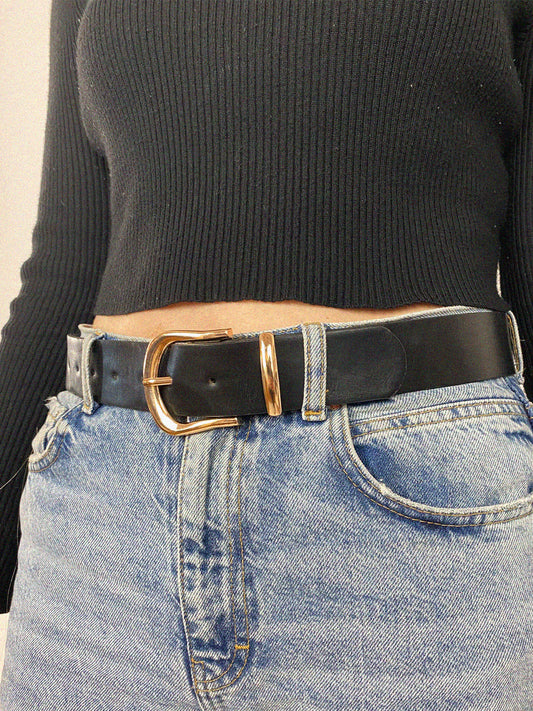 PU Leather Belt With Gold Metal Buckle
