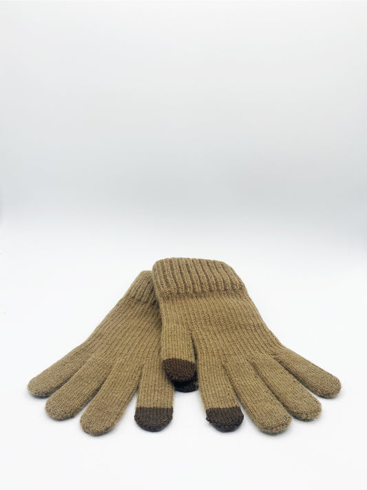 Plain Knitted Gloves in Khaki