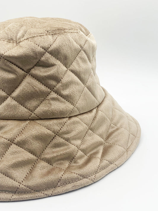 Quilted Bucket Hat in Beige