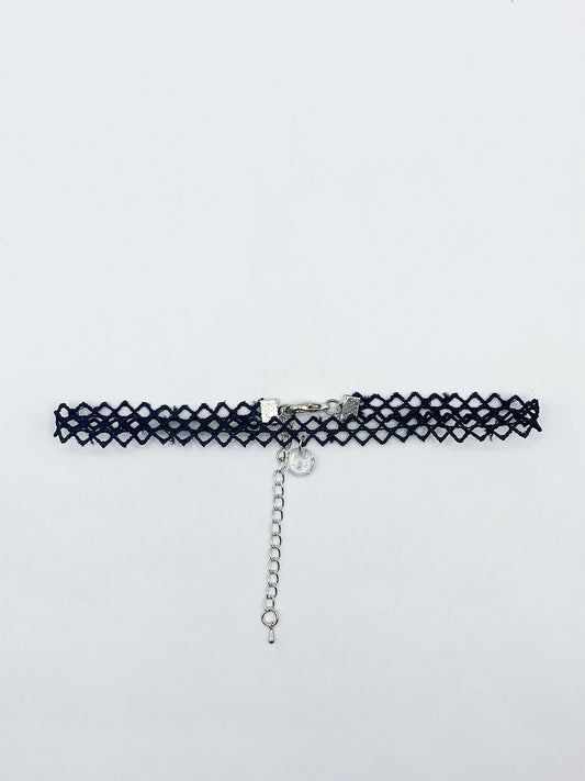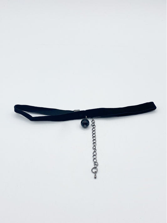 Black Faux Velvet Choker Necklace with Grey Jewel