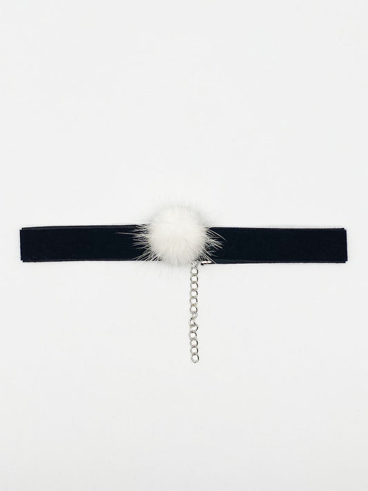 Black Faux Velvet Band Choker Necklace With White Pom Pom