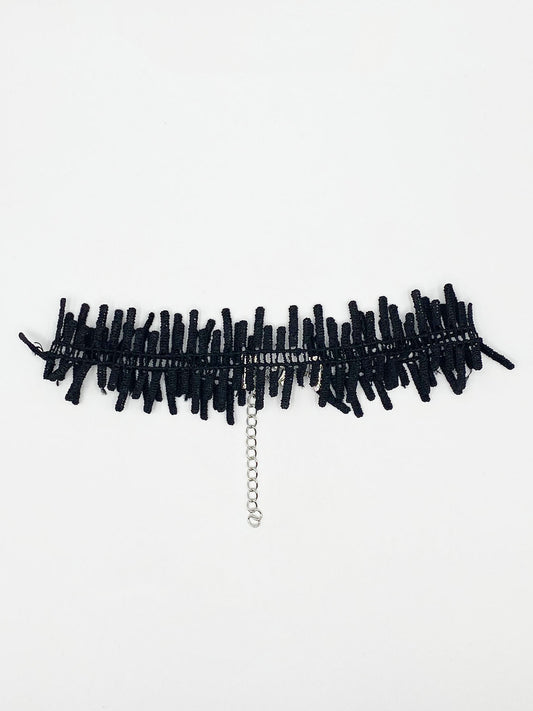 Black Faux Velvet Band Choker Necklace With Black Pom Pom