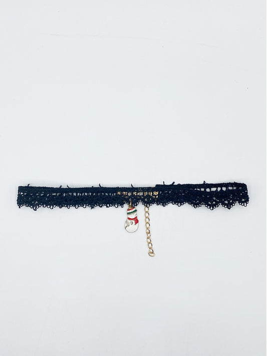 Black Corded Lace Scallop Effect Choker With Snowman Pendant