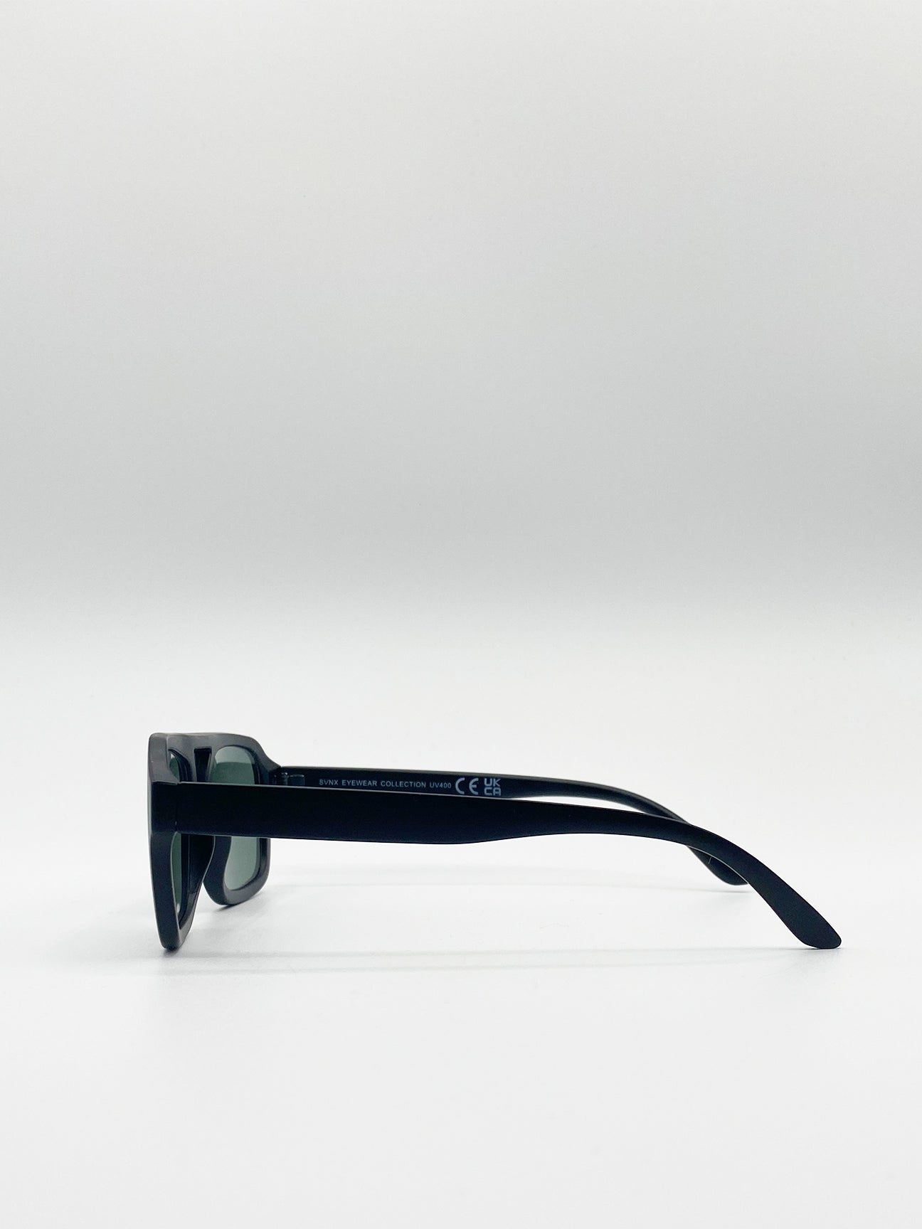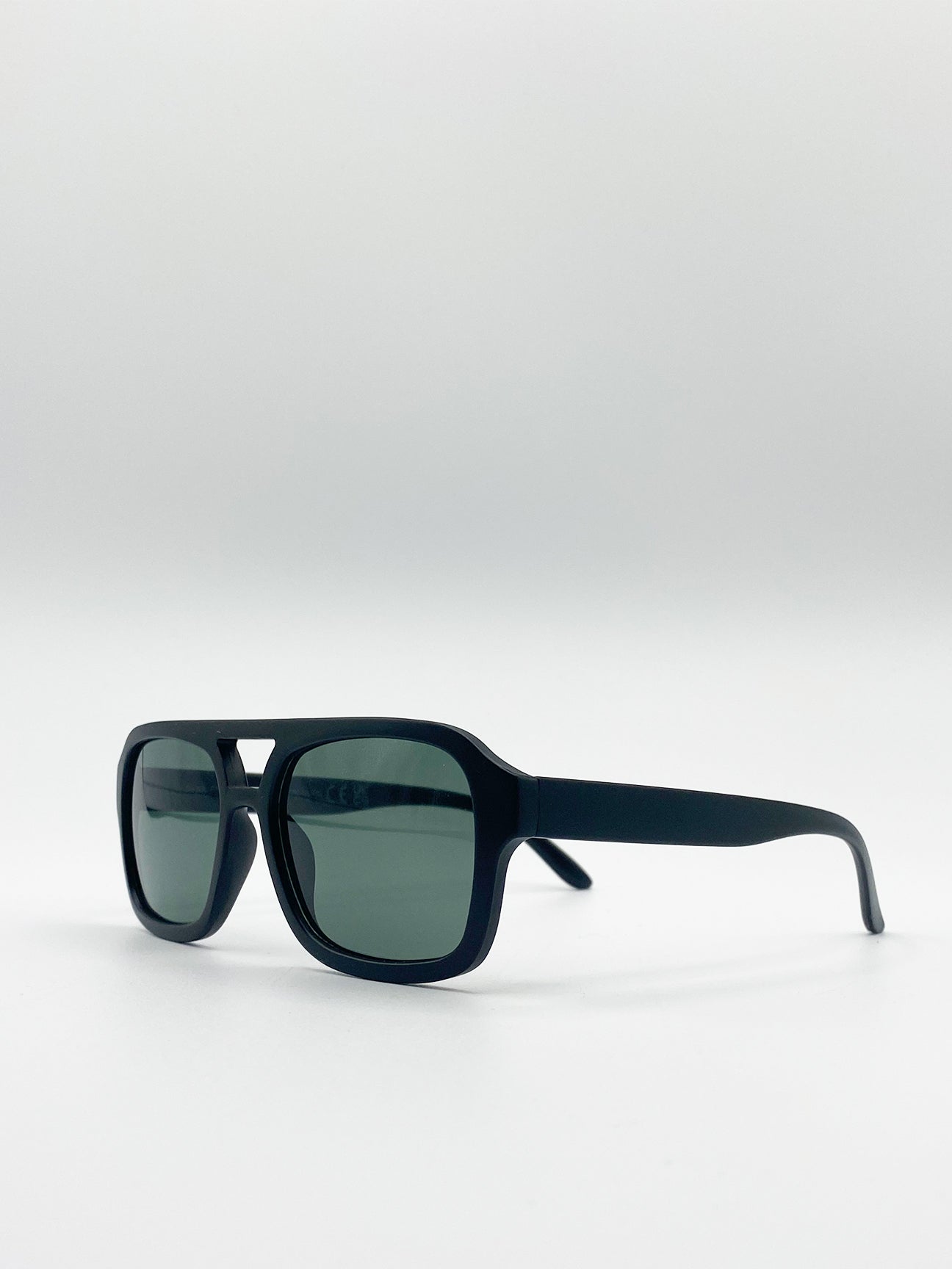 Matte Black 70's Navigator Sunglasses with Green Lenses