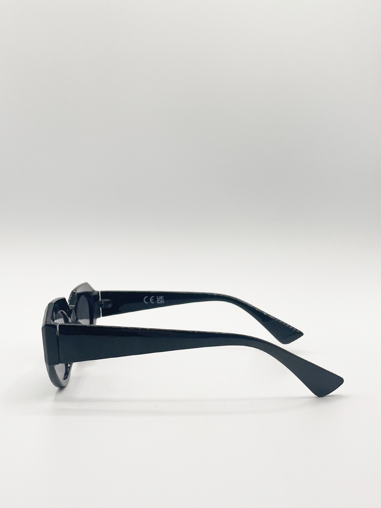 Black Angular Cat Eye Sunglasses with Black Lenses