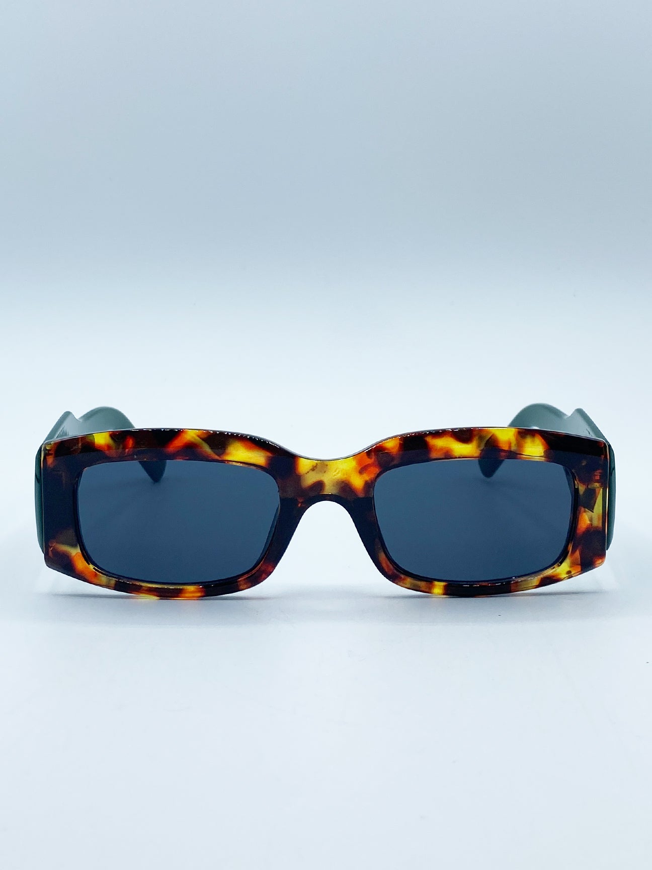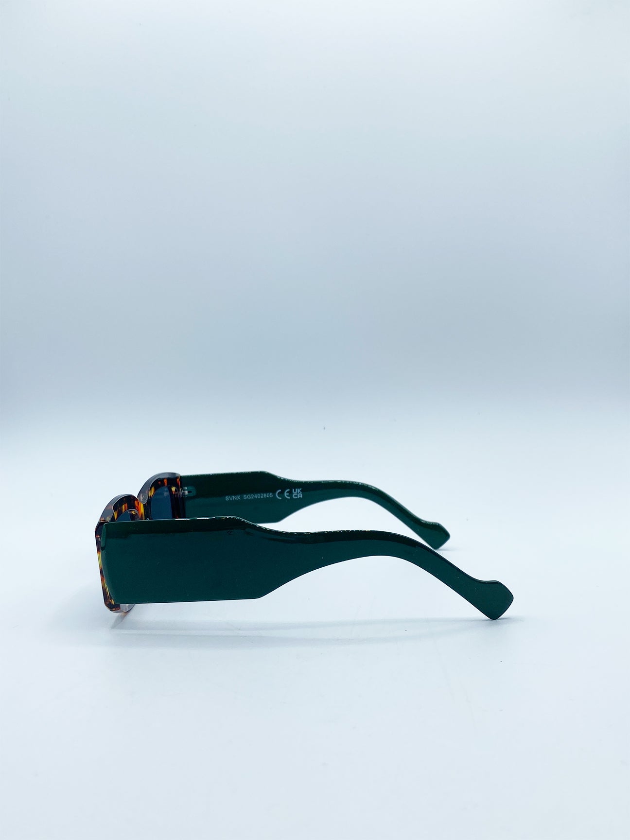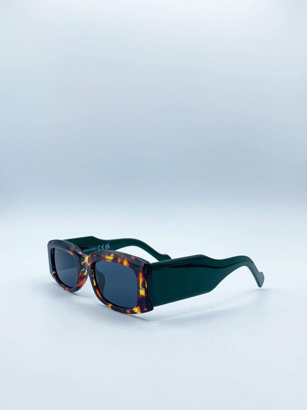 - Chunky Rectangle Sunglasses in Green with Tortoiseshell Arms
