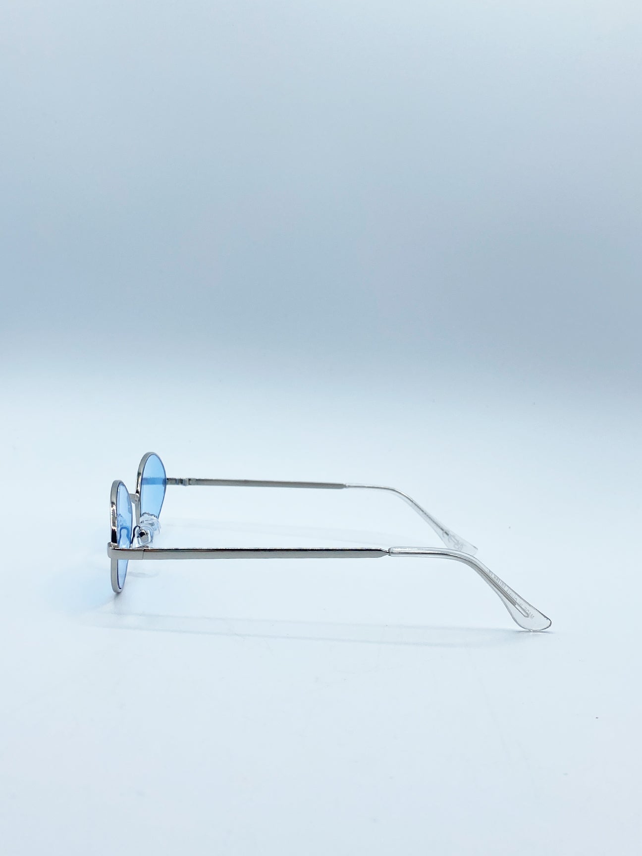- Metal Oval Frame Sunglasses with Blue Lenses