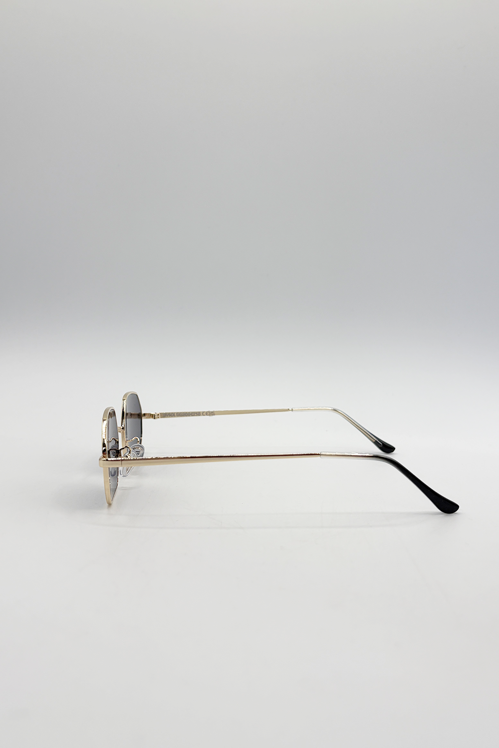 Oval Geometric Metal Frame Sunglasses Black Gold