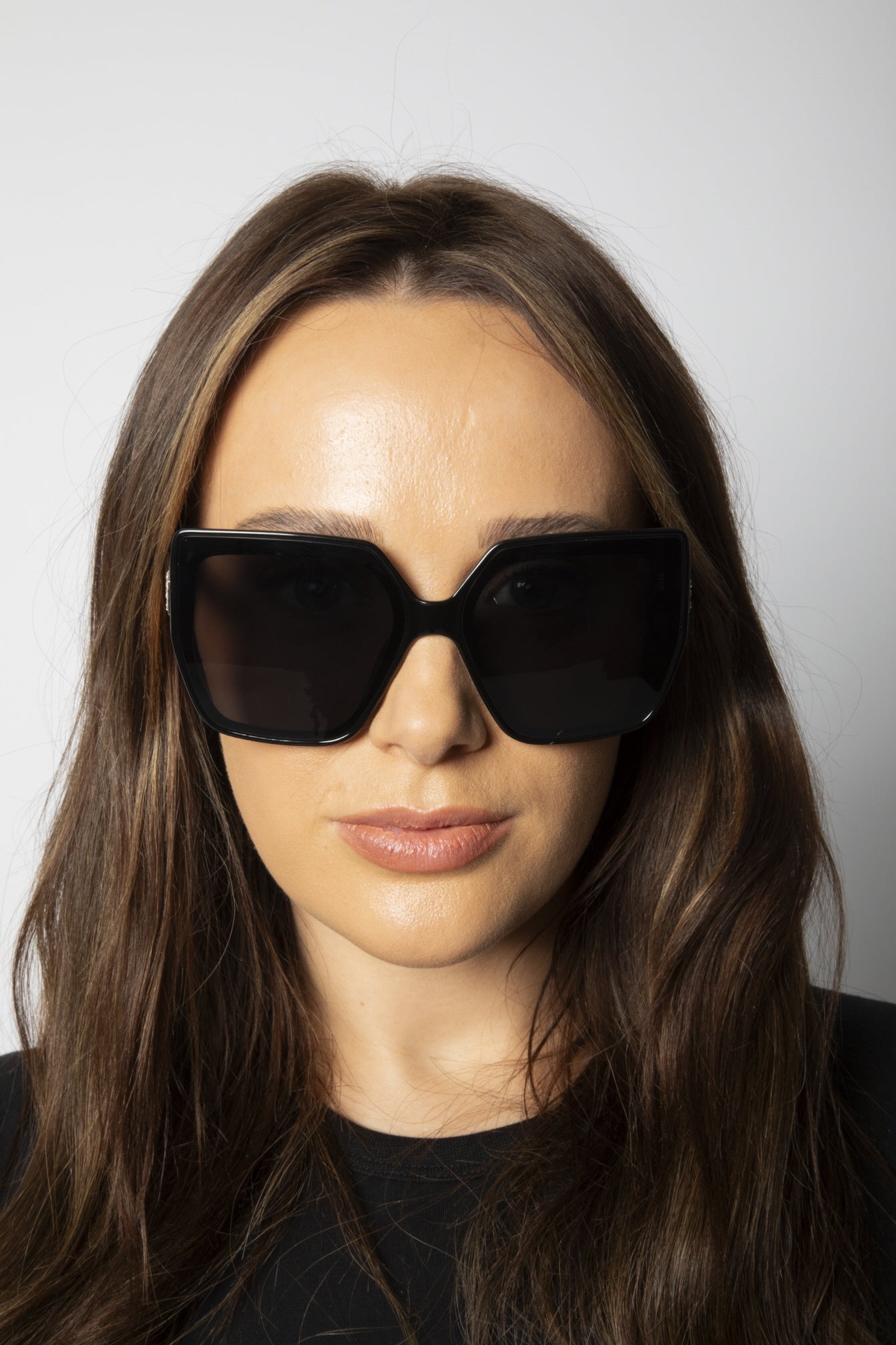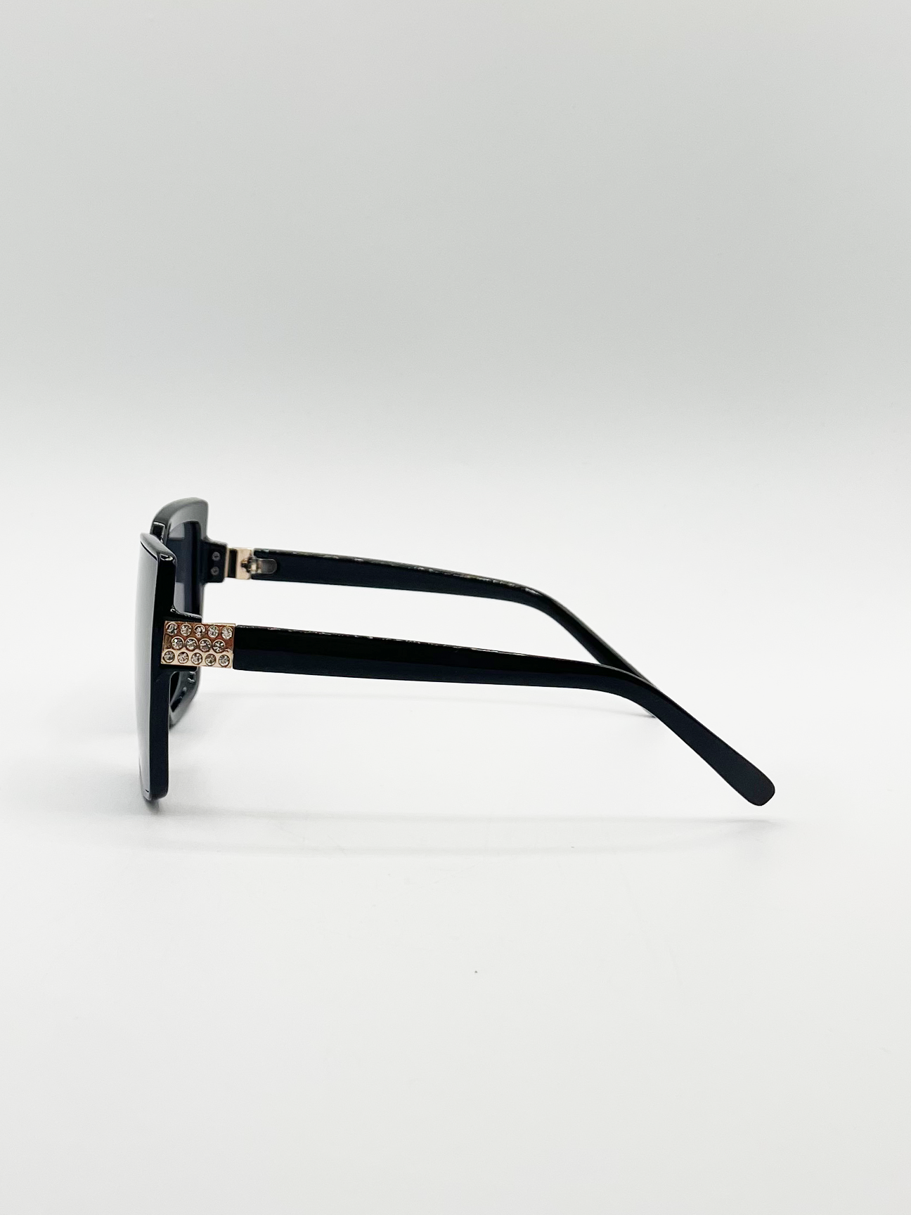 - Oversize Cateye Sunglasses with Diamante Detail in Black
