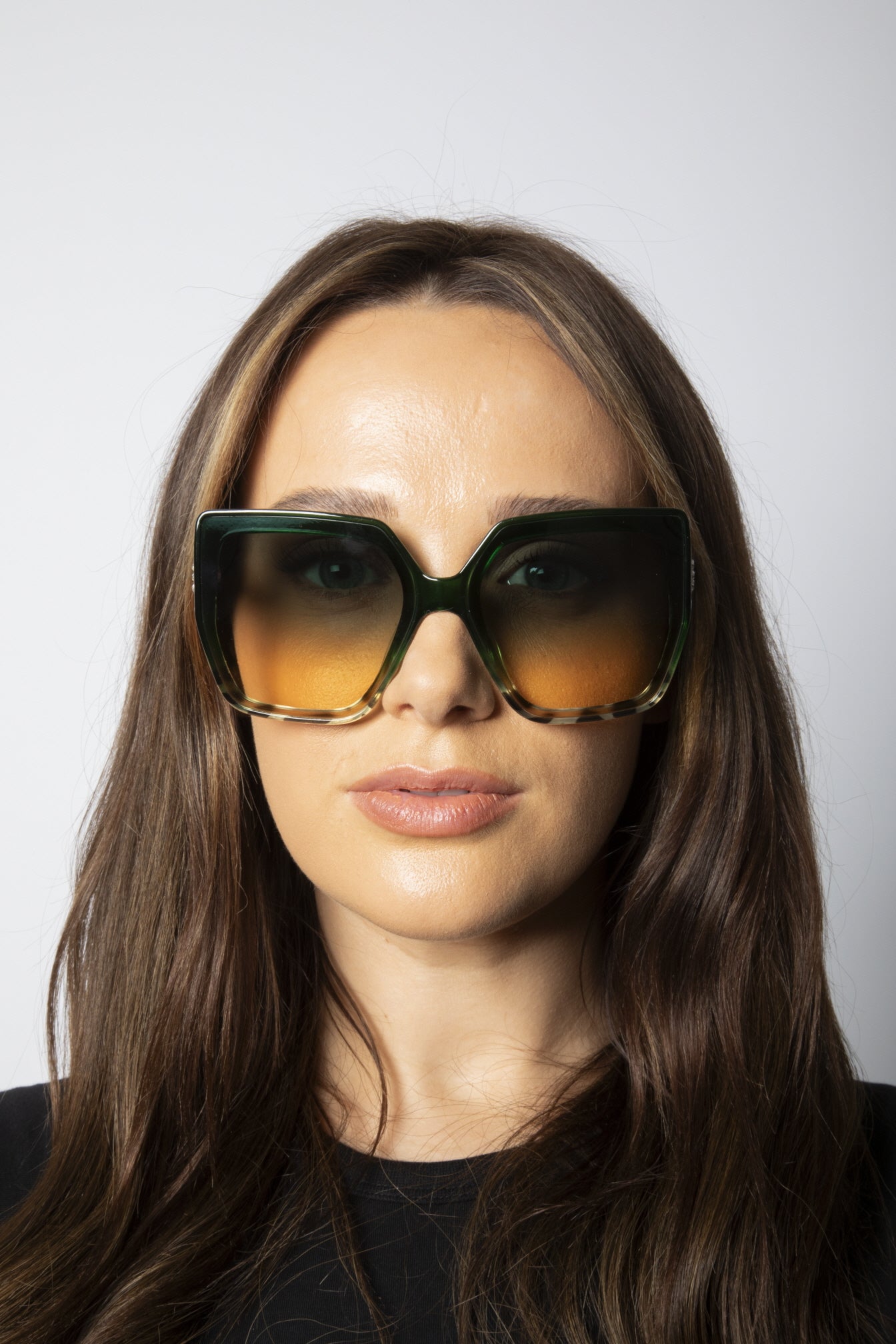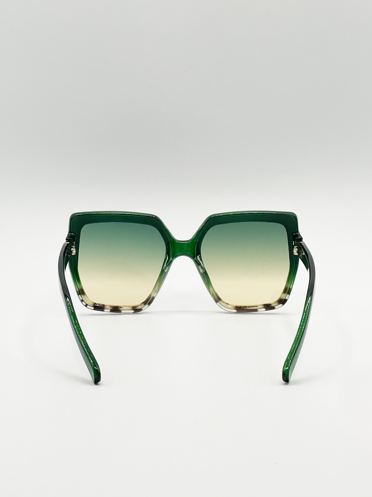 Oversize Cateye Sunglasses with Diamante Detail in Green