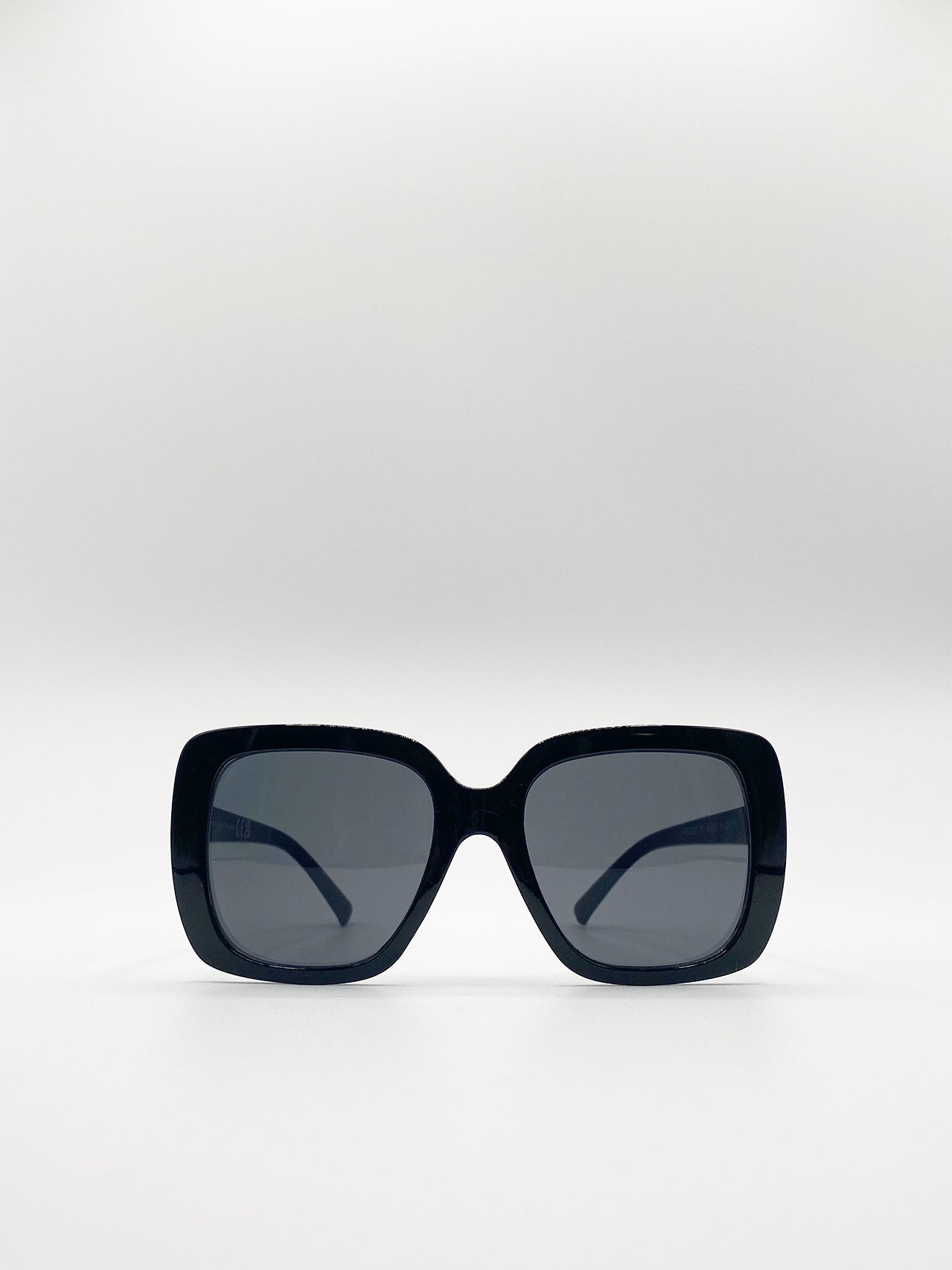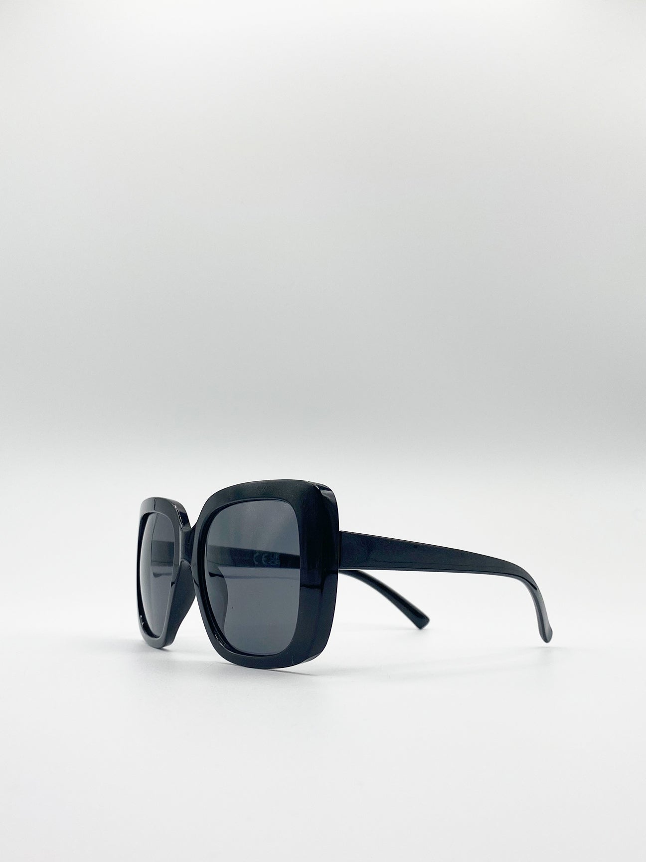 Black Oversized Square Sunglasses with Smoke Mono Lenses