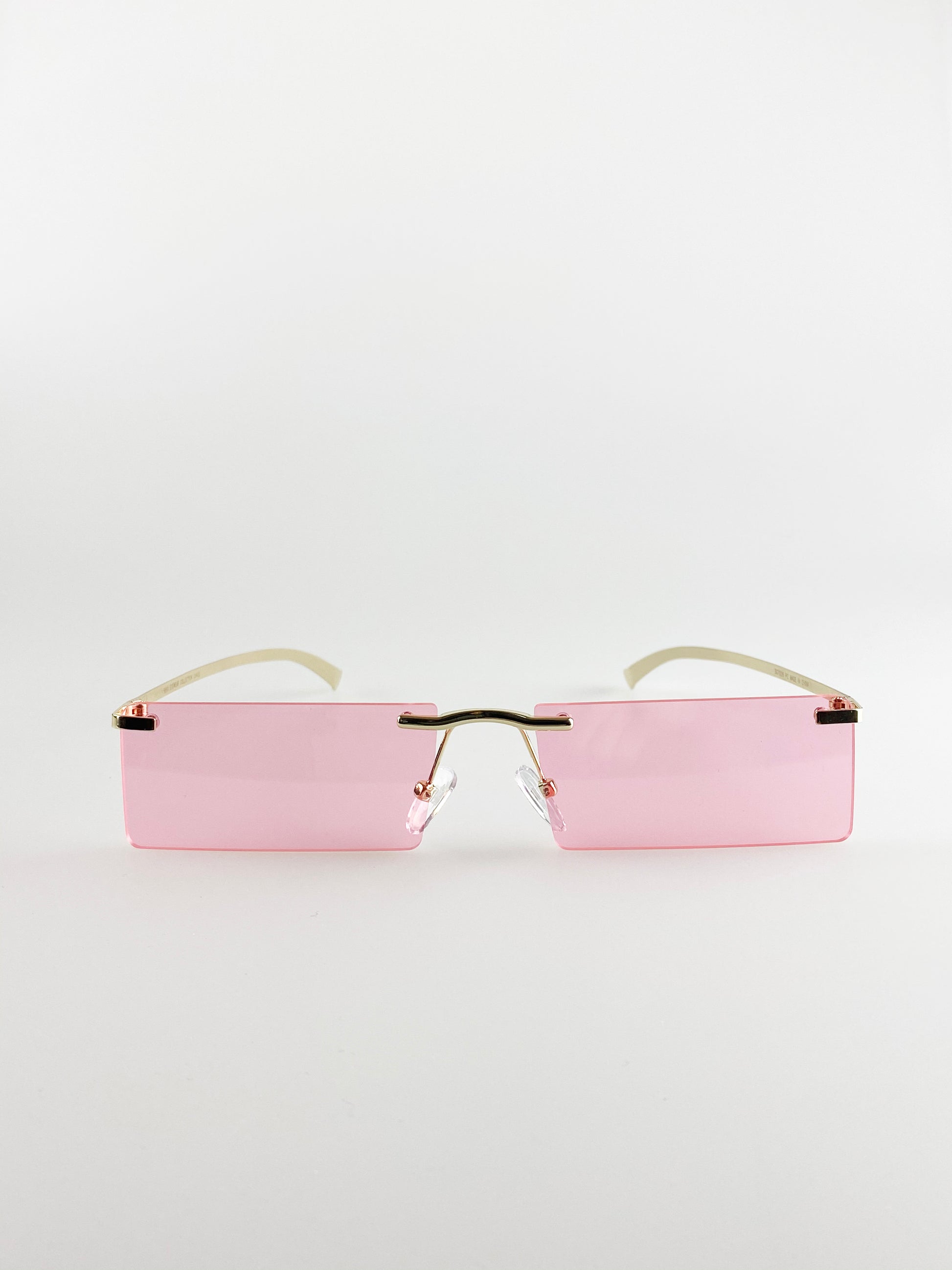 Pink Frameless Rectangle Sunglasses with Metal Arms