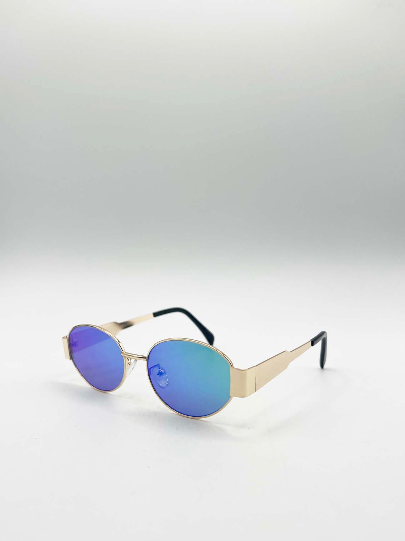 Rounded Oval Metal Frame Sunglasses in Gold Green