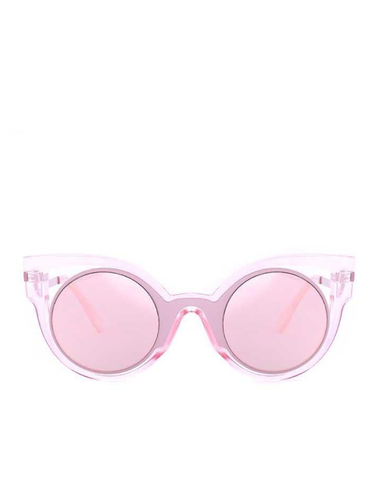 Transparent Pink Sunglasses with Round Lenses and Cat Eye Frame