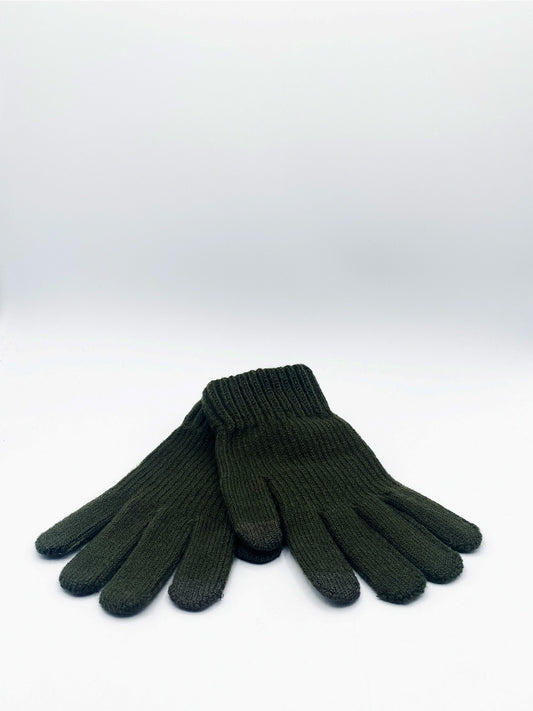 Plain Knitted Gloves in Khaki