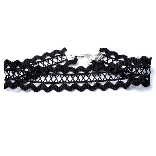 Black Corded Lace Scallop Effect Choker With Snowman Pendant
