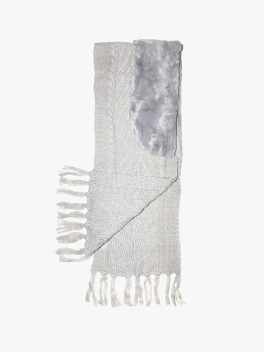 Grey Chunky Knit Scarf With Faux Fur Collar