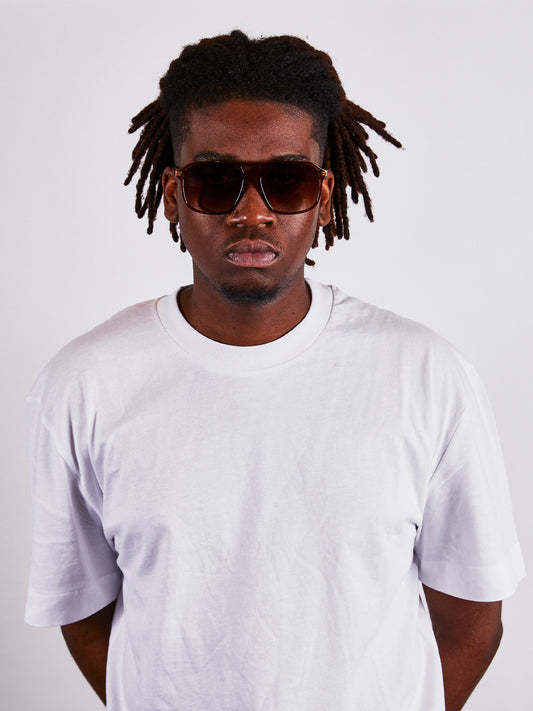 Angular Navigator style sunglasses in Brown with blue Lenses