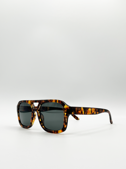 Tortoise Retro Navigator Sunglassesin Brown Green
