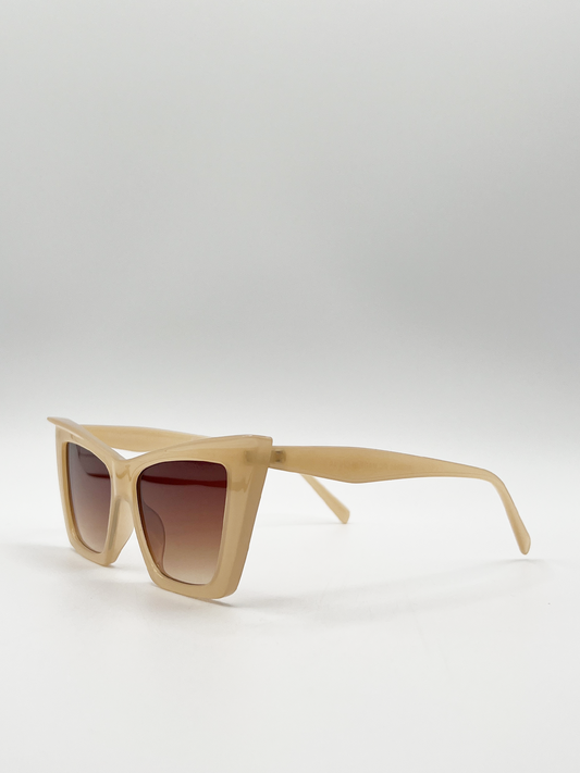 Brown Cat Eye Angular Sunglasses with Brown Lenses