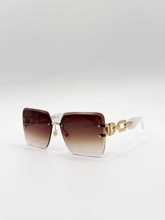 Oversized Square Sunglasses With Temple Frame Detail In Tort