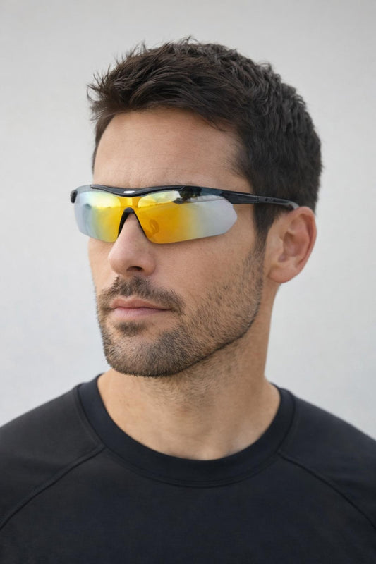 Outdoor Sports Racer Sunglasses in Black Silver Mirror