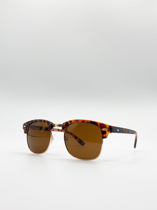 Tortoiseshell Clubmaster Sunglasses with Brown Lenses