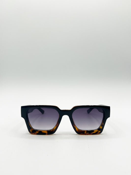Chunky Oversize square Sunglasses in Tortoiseshell with Blue Lenses