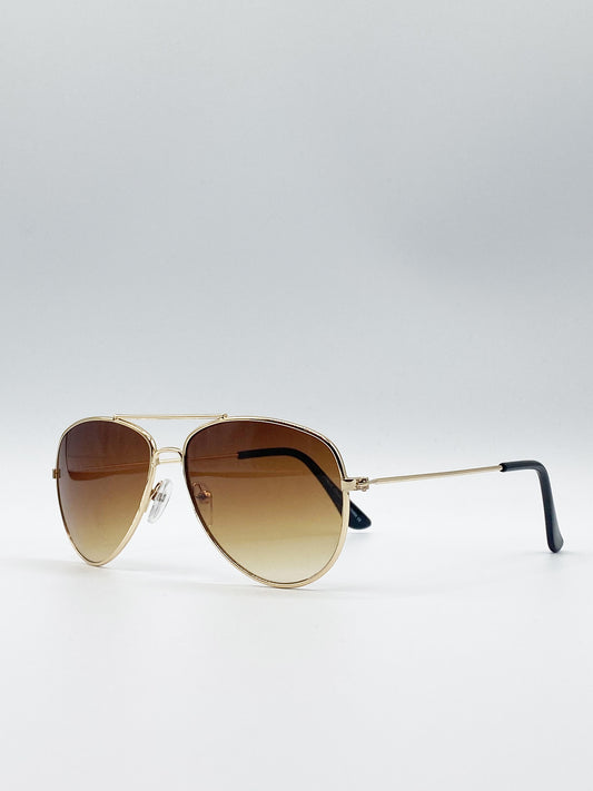 Gold 70's Collection Navigator Sunglasses With Brown Tinted Lenses