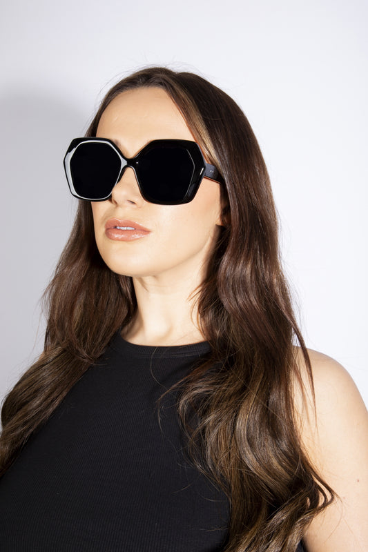 Oversized Rounded Angular Sunglasses in Black
