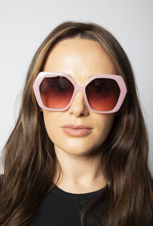 Oversized Rounded Angular Sunglasses in Pink