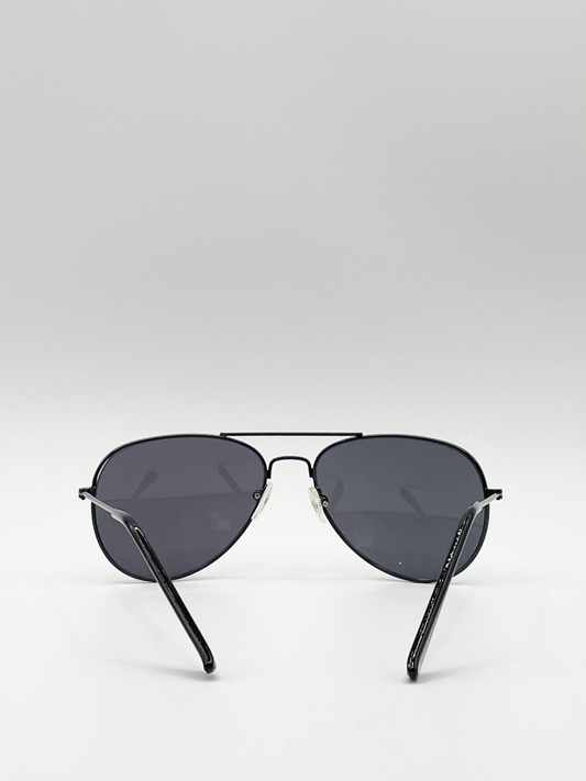 Black Plastic Frame Navigator Sunglasses With Orange Lenses