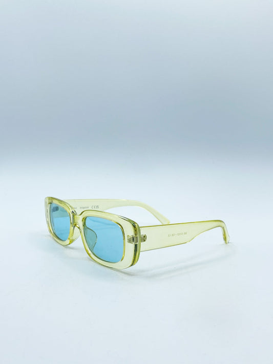 Tortoiseshell Rectangle Sunglasses with Blue Lenses