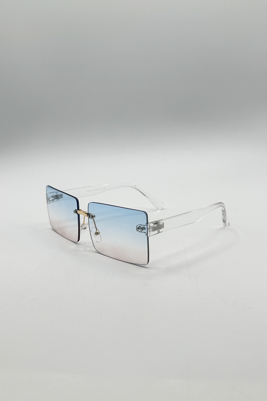 Square Rimless Sunglasses with Blue Ombre Lens