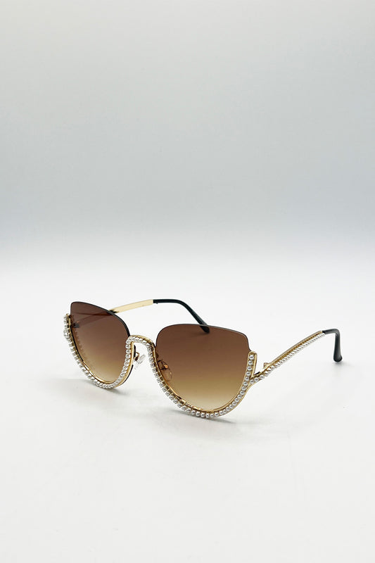 Upper Rimless Pearl Sunglasses in Gold Brown