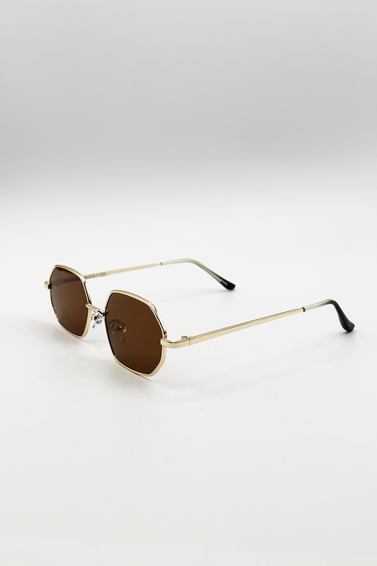 Oval Geometric Metal Frame Sunglasses in Gold Brown