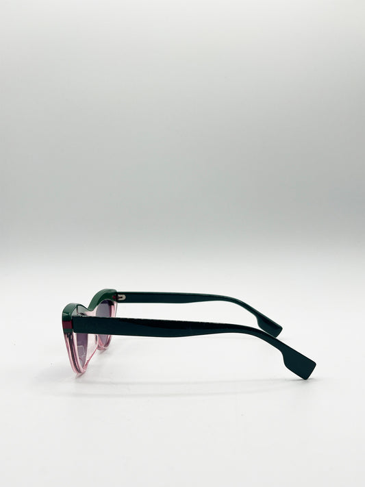 Two Tone Cat-Eye Sunglasses in Pink Green